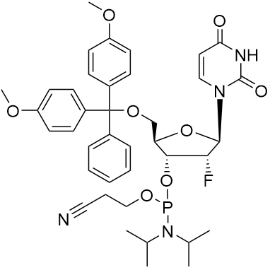 英語名:5'-O-DMT-2'-フルオ-2'-デオキシウリジン 3'-セリウムホスフォラミダイト