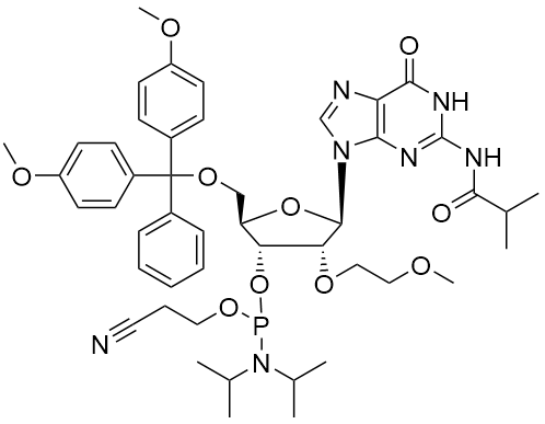 英語名:N2-isobutyryl-5'-O-DMT-2'-O-(2-methoxyethyl)guanosine 3'-CE phosphoramidite