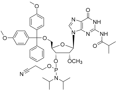 英語名:5'-O-DMT-N2-isobutyryl-2'-O-メチルグアノジン 3'-セリウムホスフォラミダイト