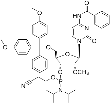 英語名:5'-O-DMT-N4-Benzoyl-2'-O-methylcytidine 3'-セリウムホスフォラミダイト