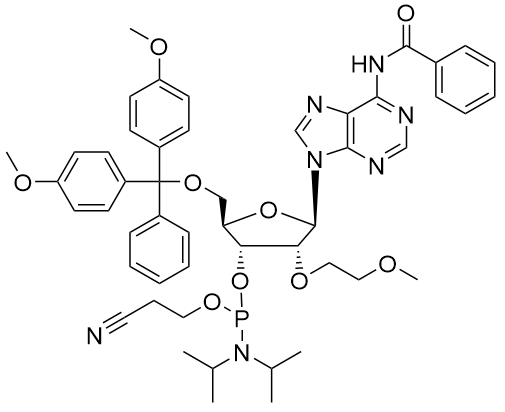 英語名:N6-Benzoyl-5'-O-DMT-2'-O-(2-methoxyethyl)adenosine 3'-CE phosphoramidite