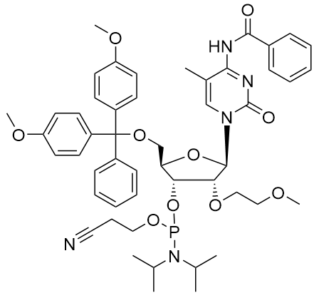 英語名:5'-O-DMT-N4-Benzoyl-5-Methy-2'-O-(2-methoxyethyl)cytidine 3'-CE phosphoramidite