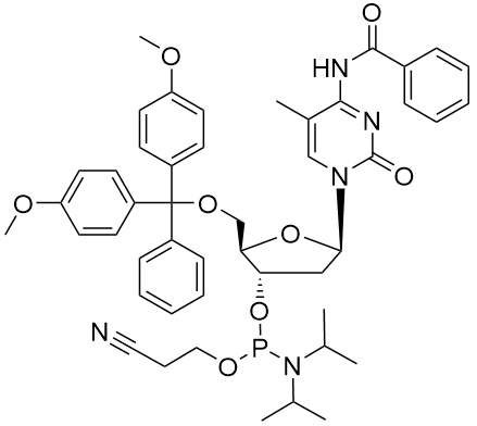 英語名:5'-O-DMT-N4-Benzoyl-5-Methyl-2'-deoxycytidine 3'-セリウムホスフォラミダイト