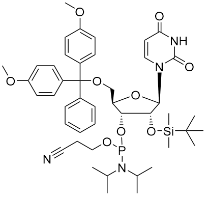英語名:5'-O-DMT-2'-O-Tert-Butyldimethylsilyl-Uridine 3'-セリウムのホスフォラミダイト
