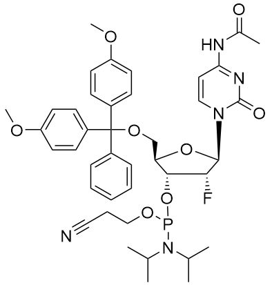 英語名:5'-O-DMT-N4-アセチル-2'-フルオ-2'-デオキシ-シティジン 3'-セリウムホスフォラミダイト