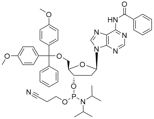 英語名:5'-O-DMT-N6-Benzoyl-2'-deoxyadenosine 3'-セリウムホスフォラミダイト