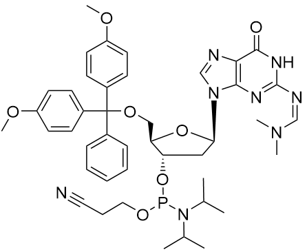 英語名:5'-O-DMT-N2-DMF-2'-デオキシグアノジン 3'-セリウムホスフォラミダイト