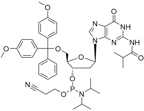 英語名:5'-O-DMT-N2-isobutyryl-2'-Deoxyguanosine 3'-セリウムホスフォラミダイト