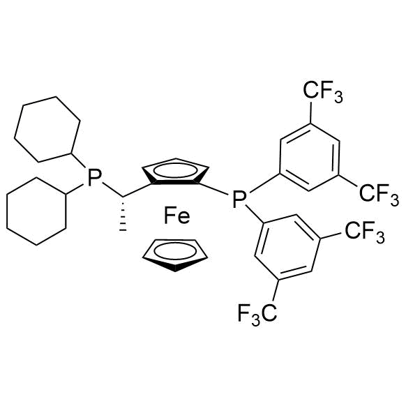 英語名:(S)-(+)-1-{(Rp)-2-[Bis(3,5-di-trifluoromethylphenyl)phosphino]ferrocenyl}ethyldicyclohexylphosphine、Josiphos SL-J006-2